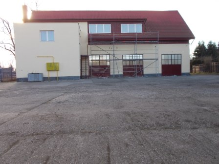 Dobudówka 19,7 m2 w tym: szatnia 14,1 m2, umywalnia 4,1 m2, WC 1,52 m2, na piętrze pomieszczenie socjalne z WC o pow.18,3 m2.