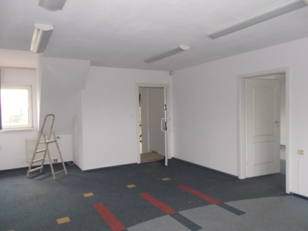 Część główna 136,3 m2, w tym: dwa pomieszczenia biurowe po 11,25 m2 i 29,34 m2, hol i sekretariat 34,06 m2, umywalnia 3,15 m2, WC 1,85 m2.